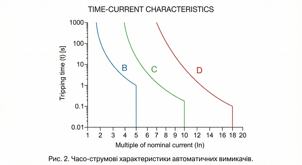 Крива відключення визначає, наскільки швидко вимикач спрацьовує при різних рівнях перевантаження по струму.